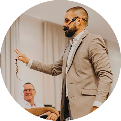 Moja przygoda z iluzją rozpoczęła się w dzieciństwie i z biegiem lat przerodziła się w profesjonalną drogę artystyczną. Branżę znam od podszewki, nieustannie rozwijając warsztat pod okiem wybitnych iluzjonistów z całego świata. Jestem laureatem nagród festiwali iluzji, a zdobyte doświadczenie przekładam na dopracowane, angażujące i zapadające w pamięć spektakle.